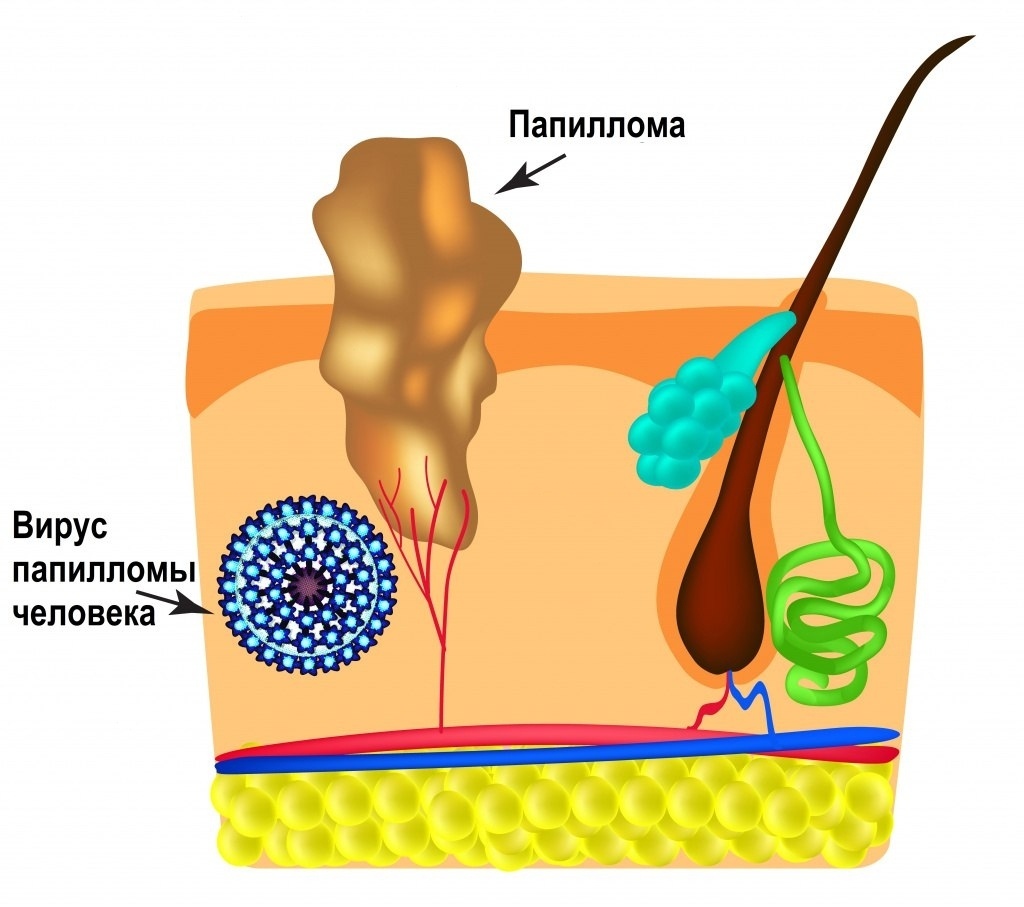 • появление папиллом (бородавок, плоских и остроконечных кондилом) на коже, половых органах, в заднем проходе, в ротовой полости и горле;