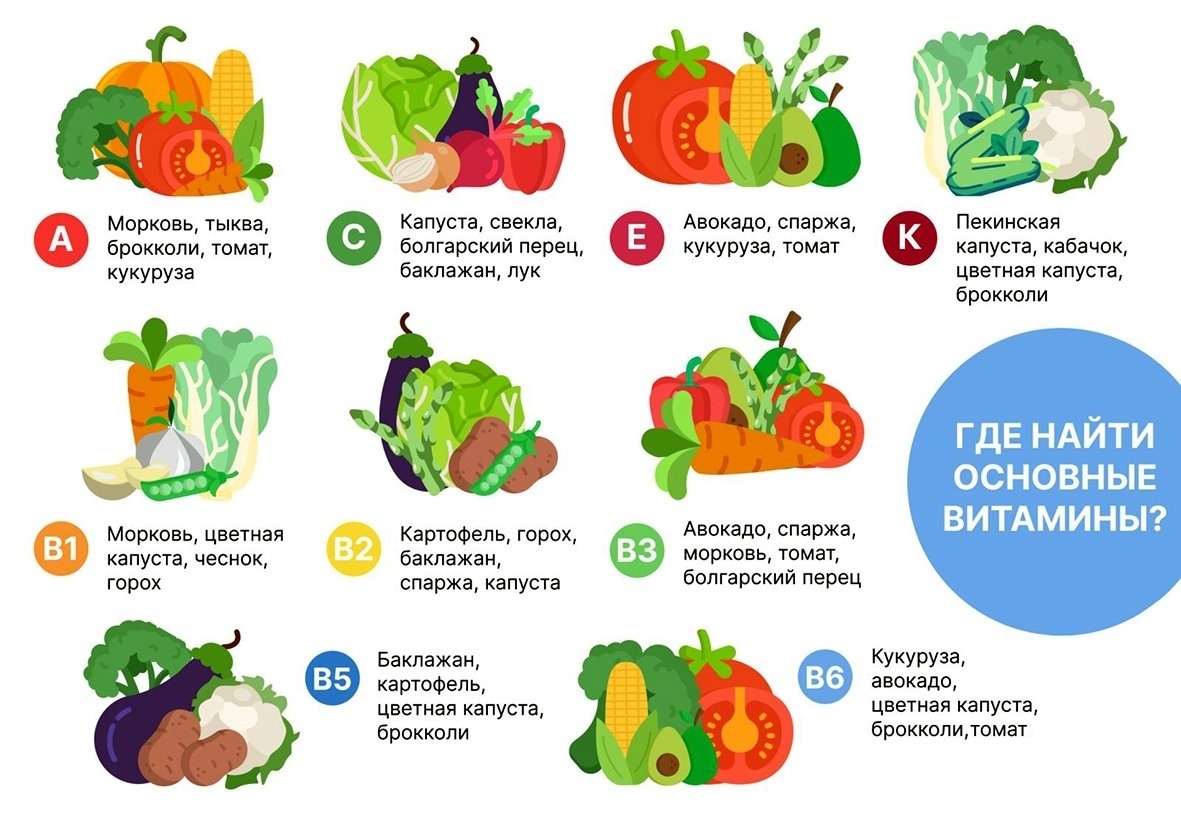 Важно, чтобы в ежедневном рационе были фрукты и овощи разных цветов: красные, оранжевые, зелёные, жёлтые, фиолетовые. Все дело в том, что растения содержат различные пигменты или фитонутриенты, которые придают им цвет. Это особые биоактивные соединения, которые отличаются от макро- и микроэлементов, но несут в себе не меньше пользы. Они помогают организму, снижая риски развития разных хронических заболеваний.