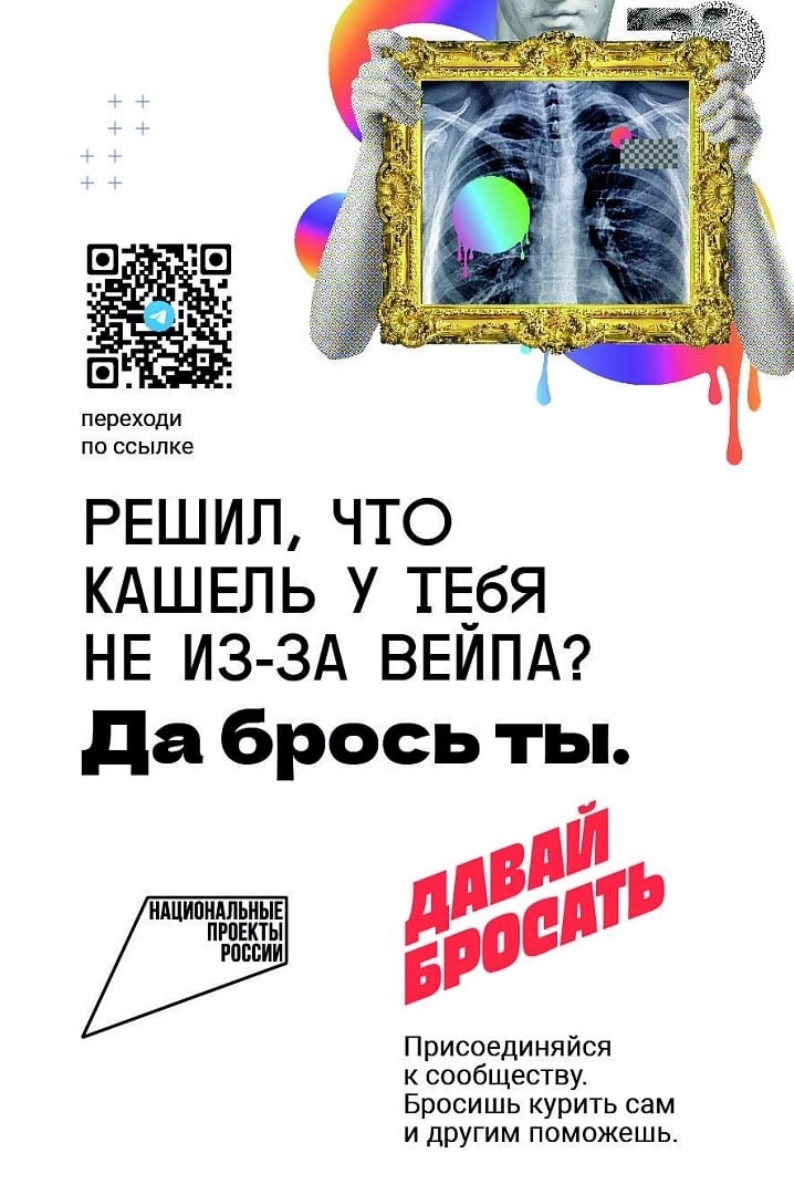 Марафон помогает сказать «нет» курению электронных сигарет, вейпов и иных устройств сообщества «Давай бросать» в мессенджере «Телеграм» и в социальной сети «Вконтакте», которое развивается по нацпроекту «Продолжительная и активная жизнь»