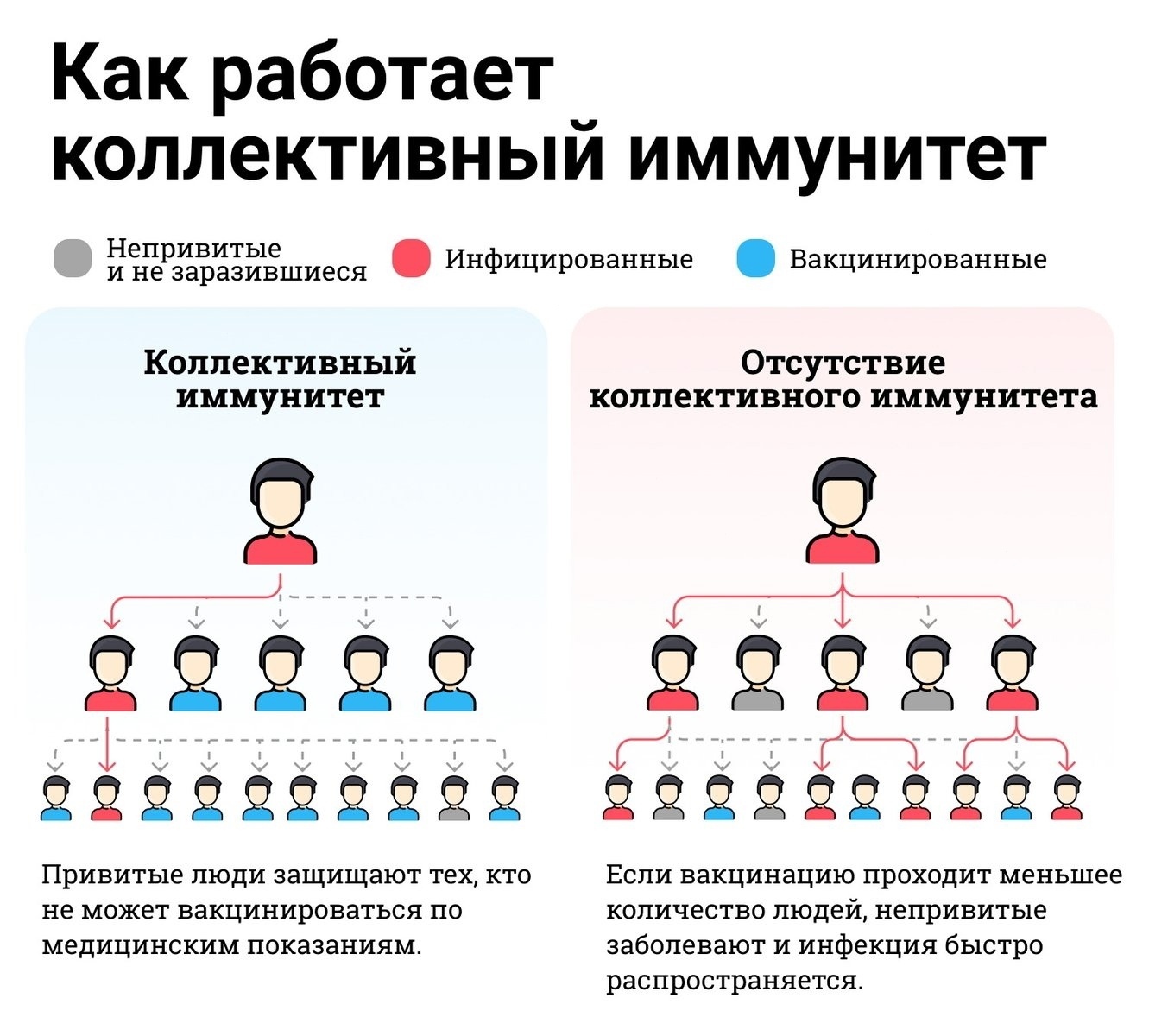 Чем больше людей вакцинировано, тем меньше шансов у вирусов и бактерий распространяться.